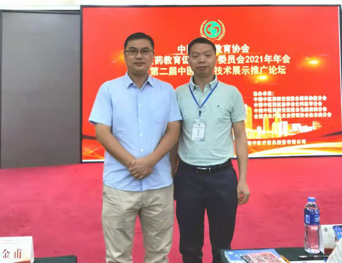 2021年7月16~18日喻清和主任医师和朱汉平博士参加在宁夏银川召开的中国医药教育协会中医药教育促进工作委员会年会,喻清和主任医师应邀作了《雷火灸在肺病治疗中的运用》学术报告,现场反映热烈。