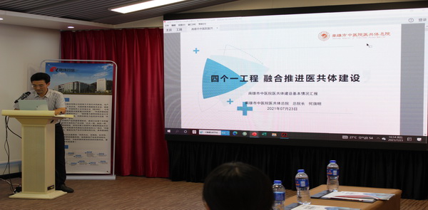广东省基层卫生协会中医药专委会副主委、南雄市中医院何旗明院长作了《“四个一工程“融合推进医共体建设》专题汇报,从医共体试点、正式试运行、”强龙头“人员下沉、紧密型运作四个节点,分享了南雄市中医院在医共体建设中经验。