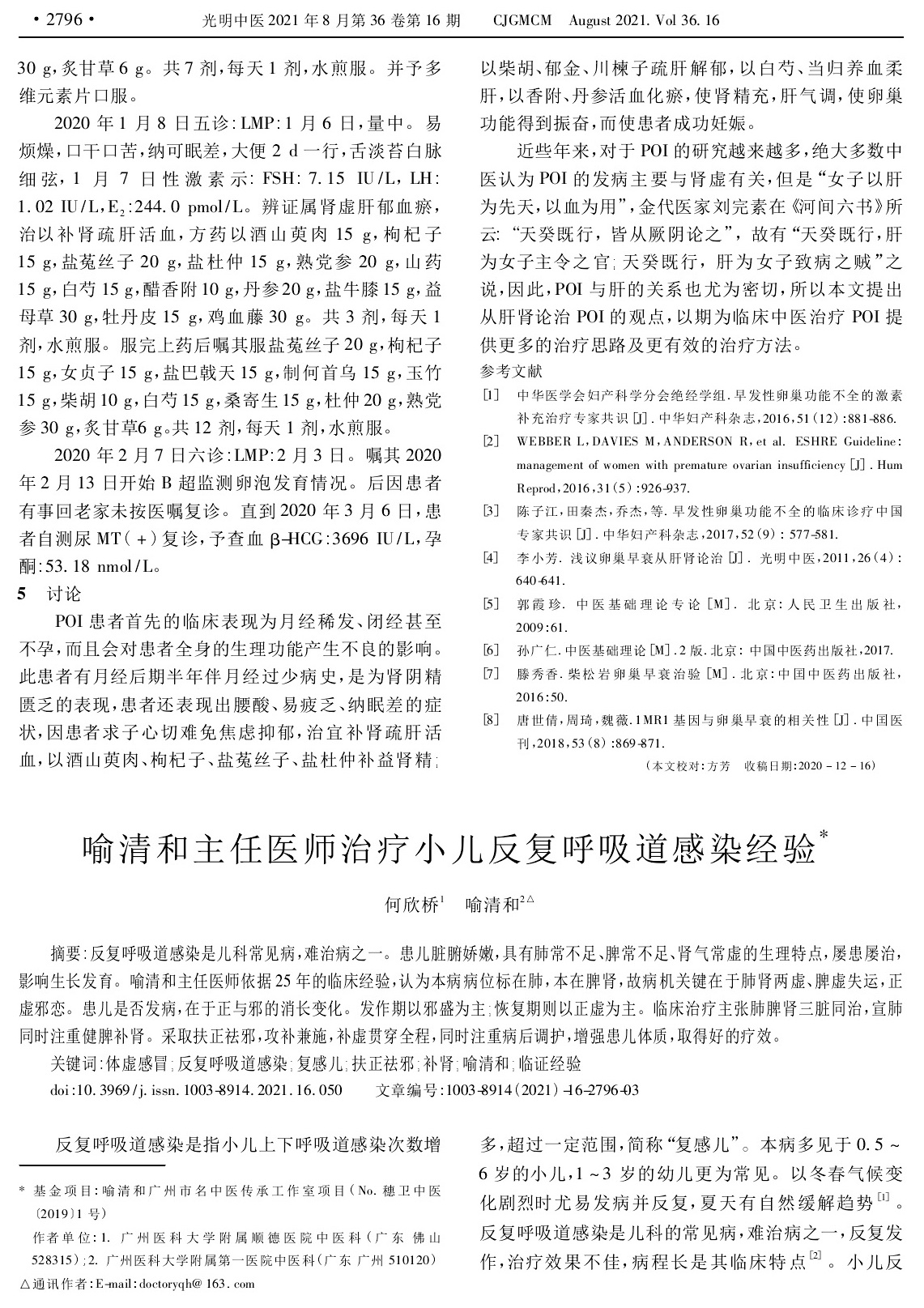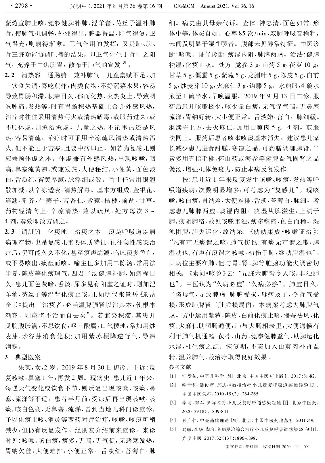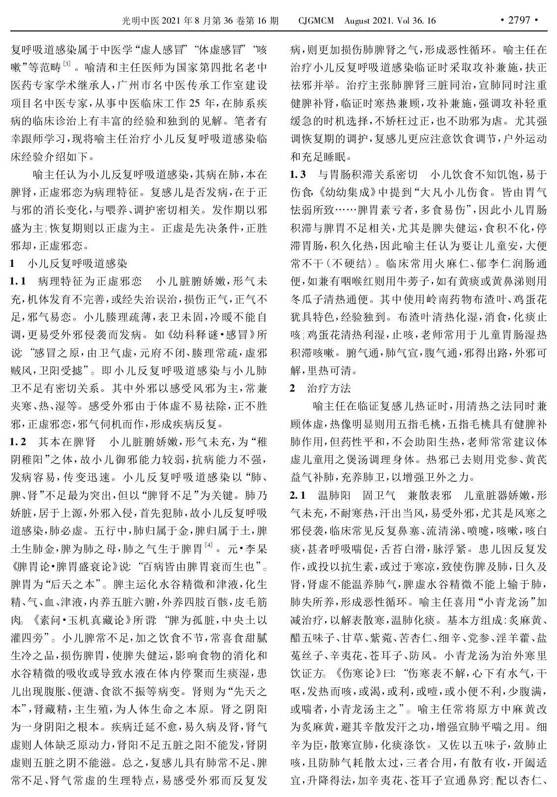 喻清和主任医师治疗小儿反复呼吸道感染经验