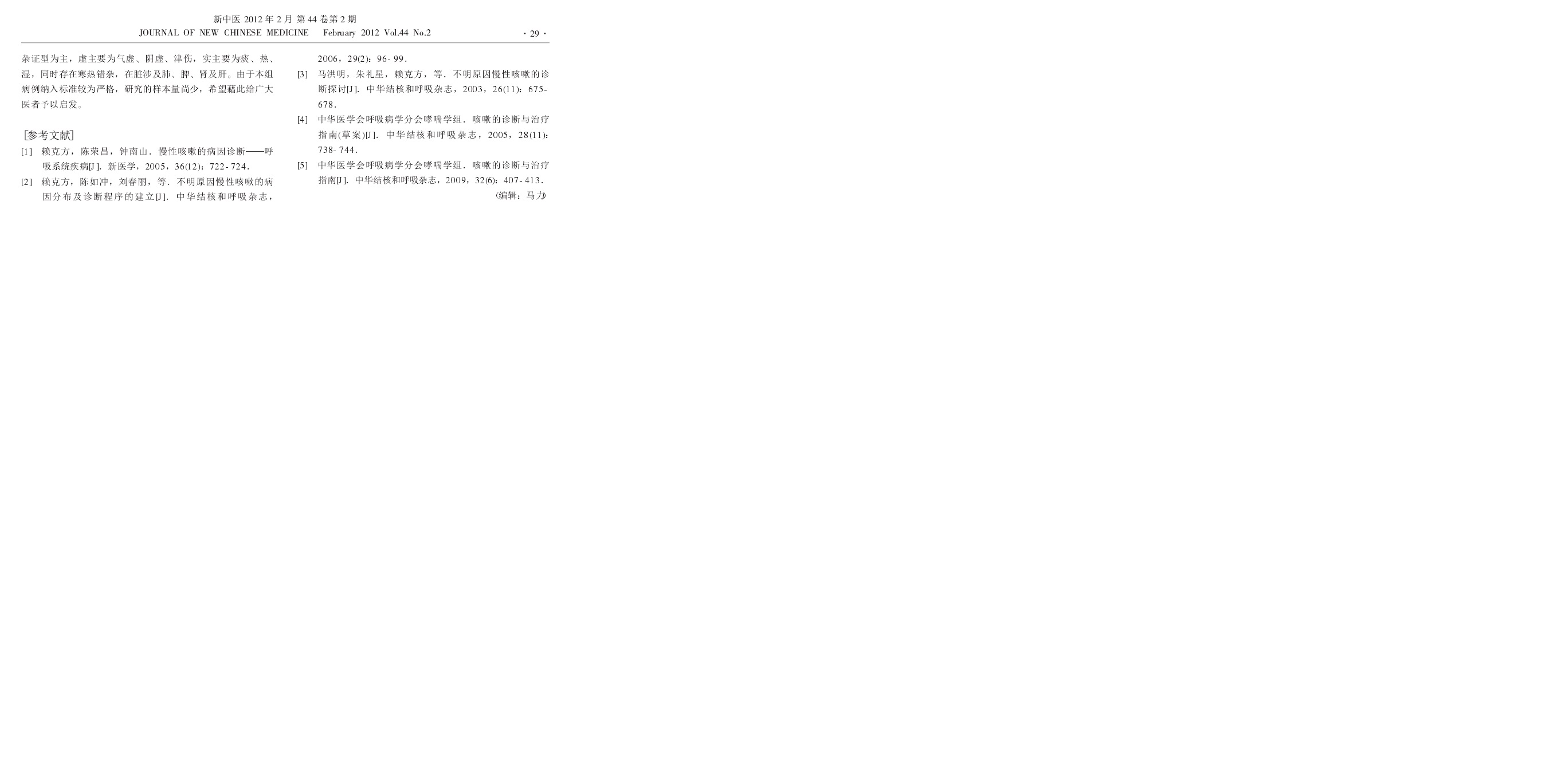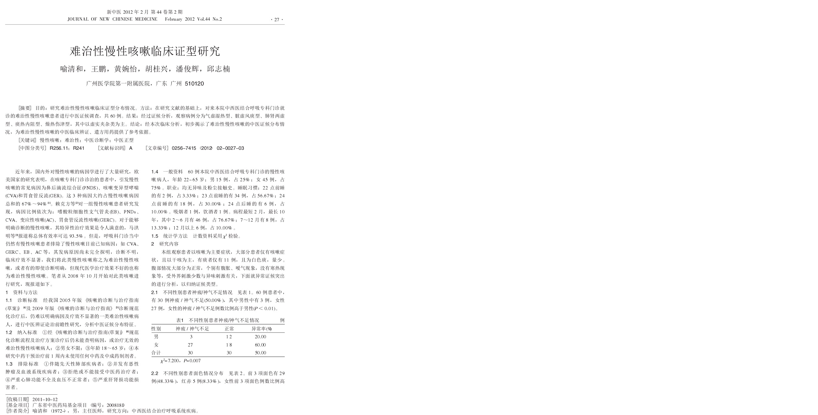 难治性慢性咳嗽临床证型研究