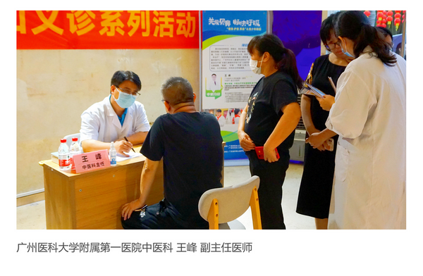 为进一步传承和弘扬中医传统文化,满足人民群众对健康生活的需求,11月11日,广东省钟南山医学基金会联合天河区东晖社区居委会、广州医科大学附属第一医院、广东省呼吸与健康学会中西医结合专委会、广州路劲物业服务有限公司隽悦园物业服务中心等单位共同举办“南山义诊走进东晖社区”公益活动,我院肺病专科团队王峰副主任医师带领宋兴华主治医师、赵钦绵硕士为居民提供中医义诊与健康咨询。专家通过望、闻、问、切,并耐心听取问诊居民陈述的个人既往病史和身体状况,为居民提供诊疗建议和改善方案,并细心叮嘱日常注意事项。