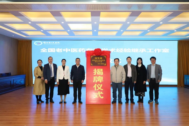 贺州市卫生健康委党组成员、副主任宋建,贺州市人民医院党委书记周正银,广州医科大学附属第一医院教授潘俊辉、喻清和、王峰、黄婉怡,贺州市人民医院肿瘤科一病区、中西医结合科主任蒋著椿,副主任陈素梅共同为潘俊辉全国老中医药专家学术经验继承工作室贺州市人民医院分站揭牌。