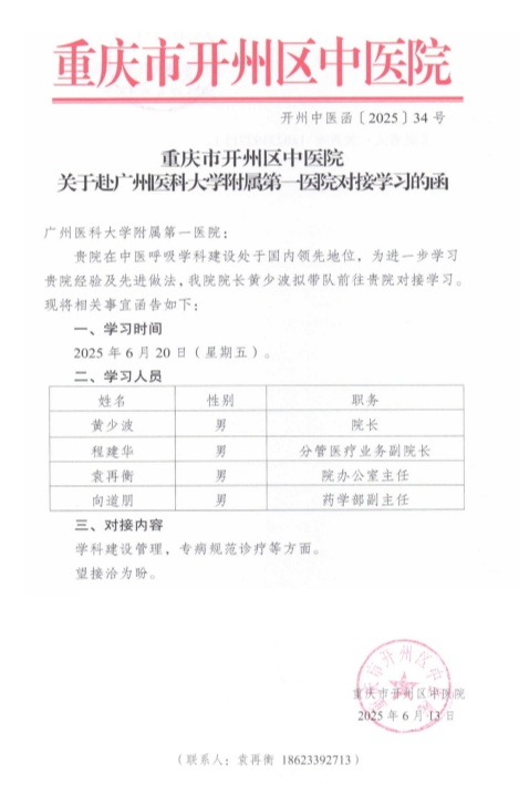 重庆市开州区中医院来我院交流中医肺病专科建设